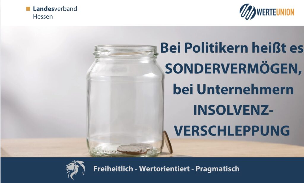 Überschuldung des Staates Wenn der Staat Schulden macht, die zur Überschuldung führen nennt man es Sondervermögen. Wenn Unternehmer aufgrund von Überbürokratie mit immer höheren Kosten kämpfen, die zur Zahlungsunfähigkeit führen […]